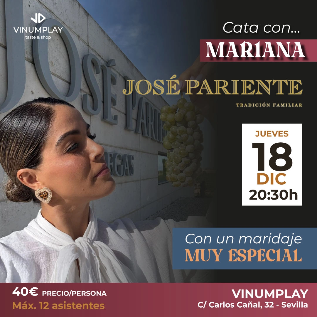 18 de diciembre 20:30 - 22:30 Cata con Mariana (José Pariente) Vinumplay Taste&Shop Sevilla C. Carlos Cañal, 32, Casco Antiguo, Sevilla 40,00€